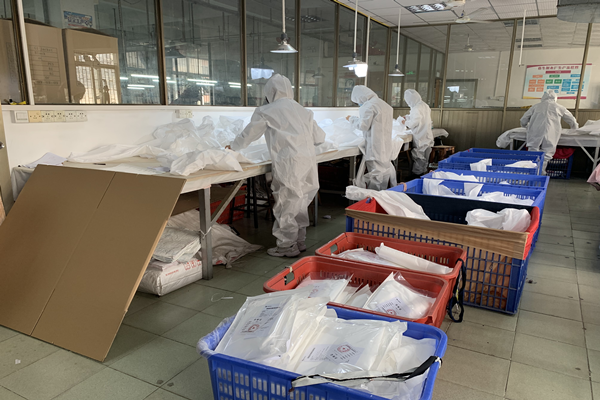 做好上面的防護準備工作,員工(身體狀況良好的)也可以放心的來到工廠上班了,現(xiàn)在思諾華制衣的員工也已經(jīng)陸陸續(xù)續(xù)的來到工廠,全力開展生產(chǎn)防護服,抗擊疫情,隔離病毒但不隔離愛,請觀看以下思諾華制衣工廠實拍生產(chǎn)民用防護服的圖片(員工均佩戴口罩、身體狀況均良好):