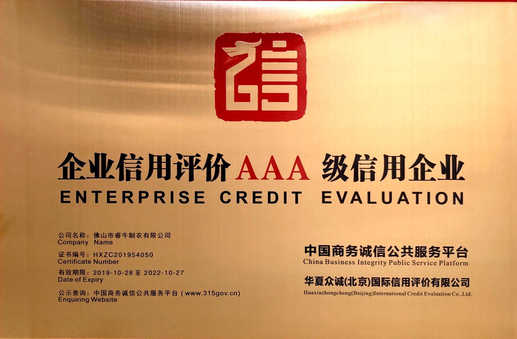 思諾華&睿牛制衣——企業信用評價AAA級信用企業