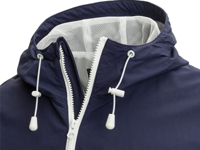風衣內襯:風衣內里采用網布構造。在劇烈運動時,可加速透氣排濕,身體不悶熱,衣服不粘身。