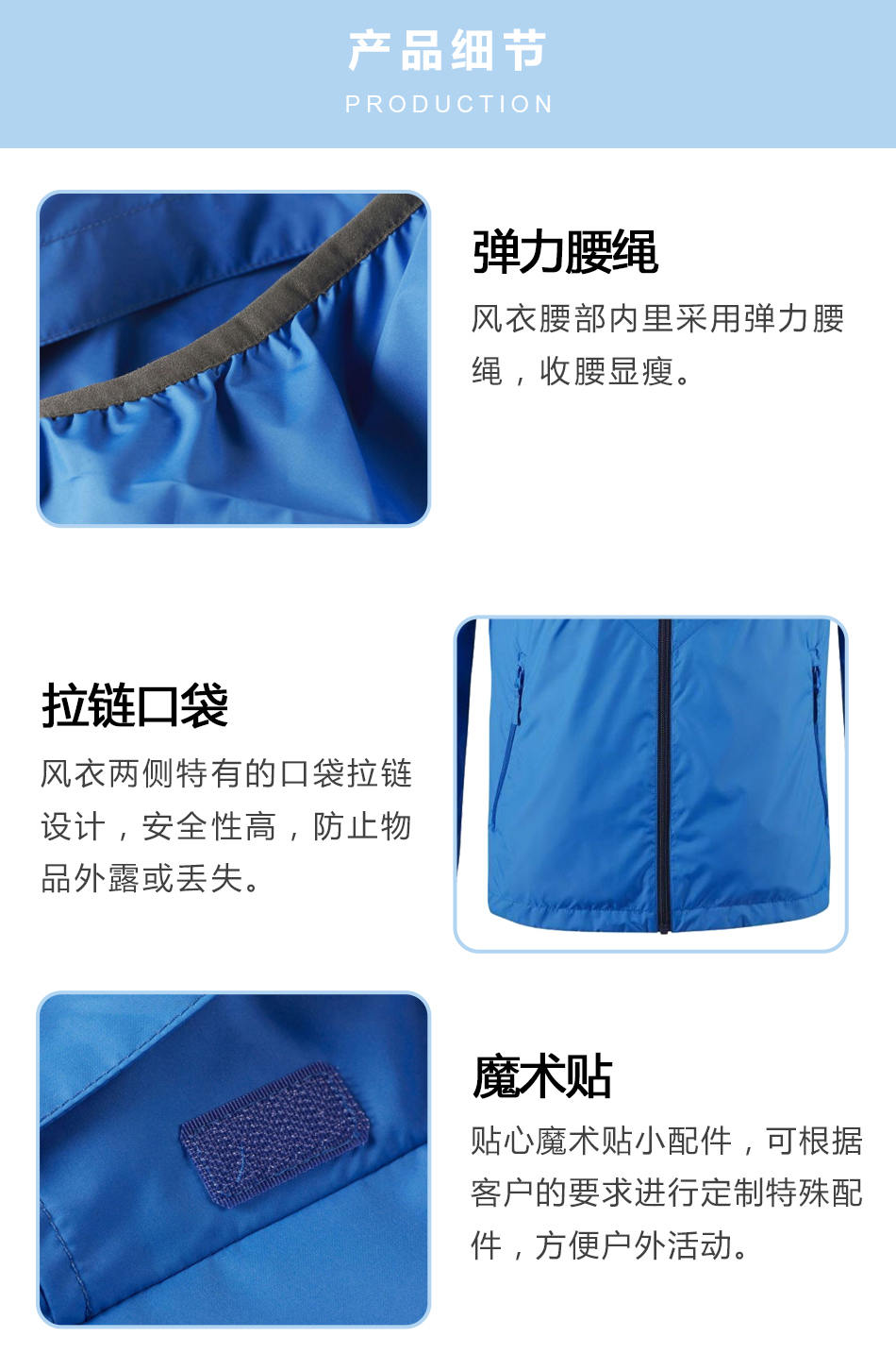 拉鏈口袋團體風衣定制其兩側特有的口袋拉鏈設計,安全性高,防止物品外露或丟失。