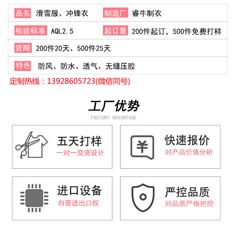 戶外防風(fēng)防水透氣保暖滑雪服定制代工