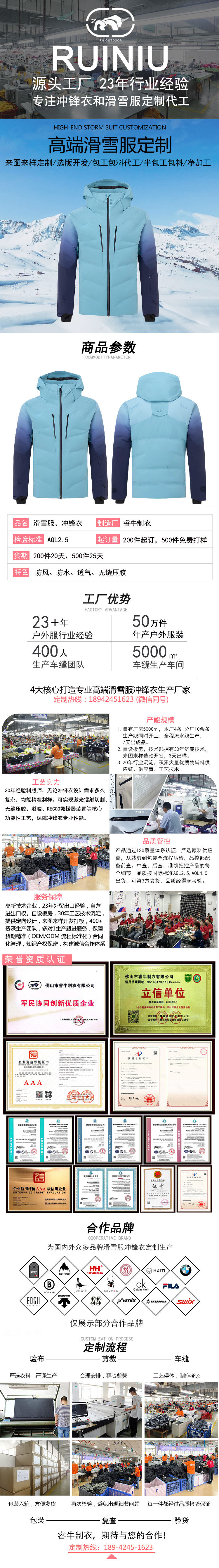 持續23年專注沖鋒衣、滑雪服定制加工廠家